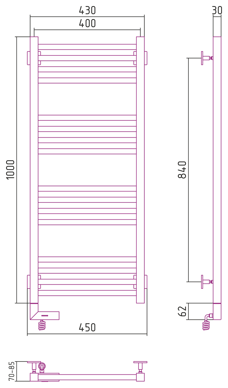 Внешние габариты (высота х ширина х глубина)(мм) : 1062x450x70-85