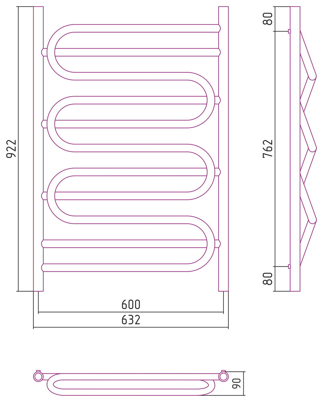 Размер полотенцесушителя:1000x600