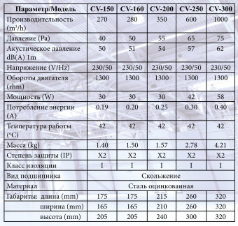 Характеристики канального вентилятора Era CV-150
