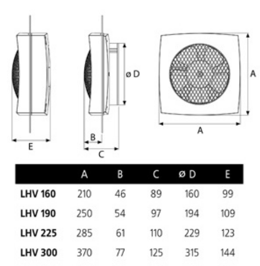 Установочный диаметр воздуховода мм: 229